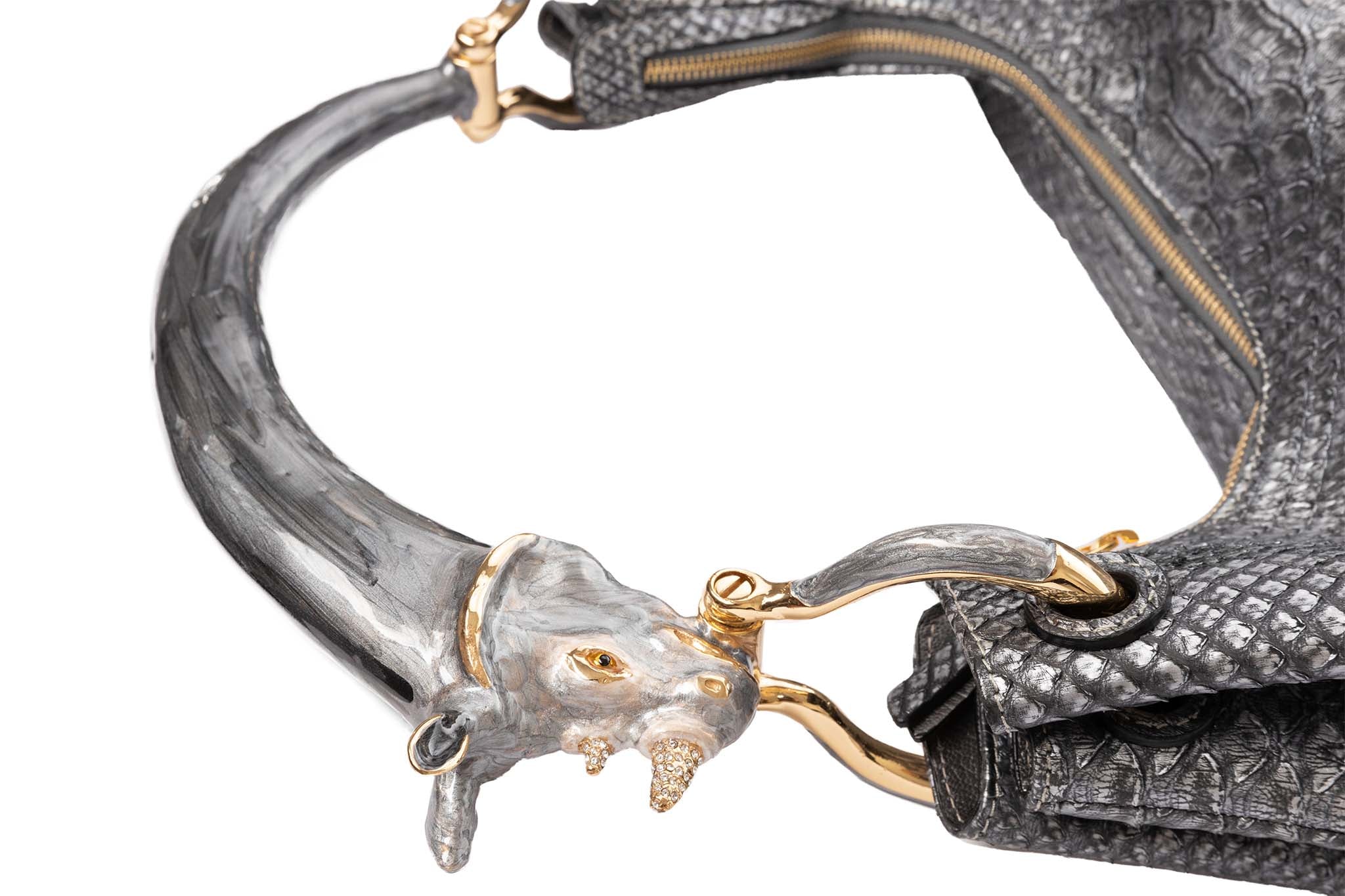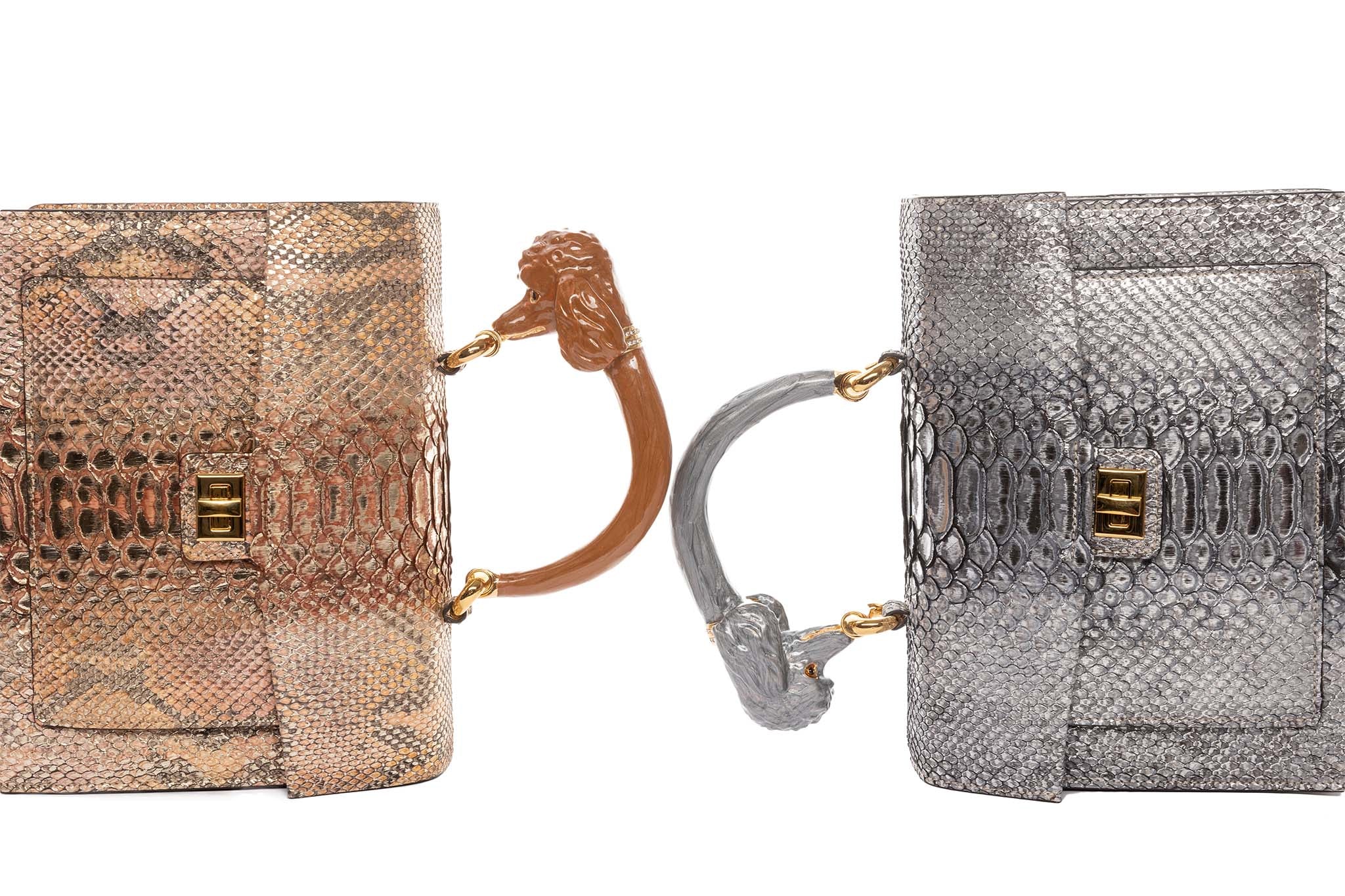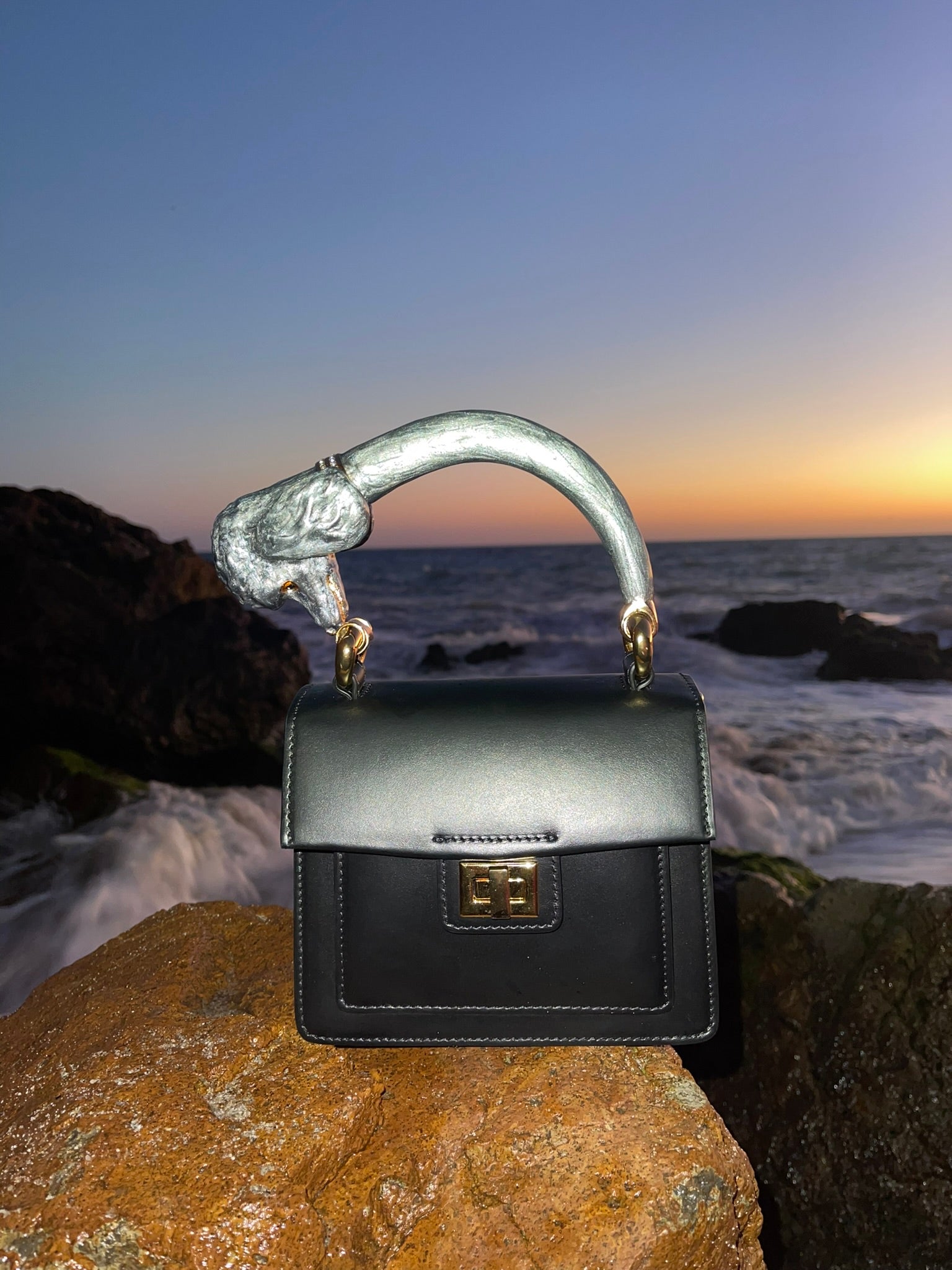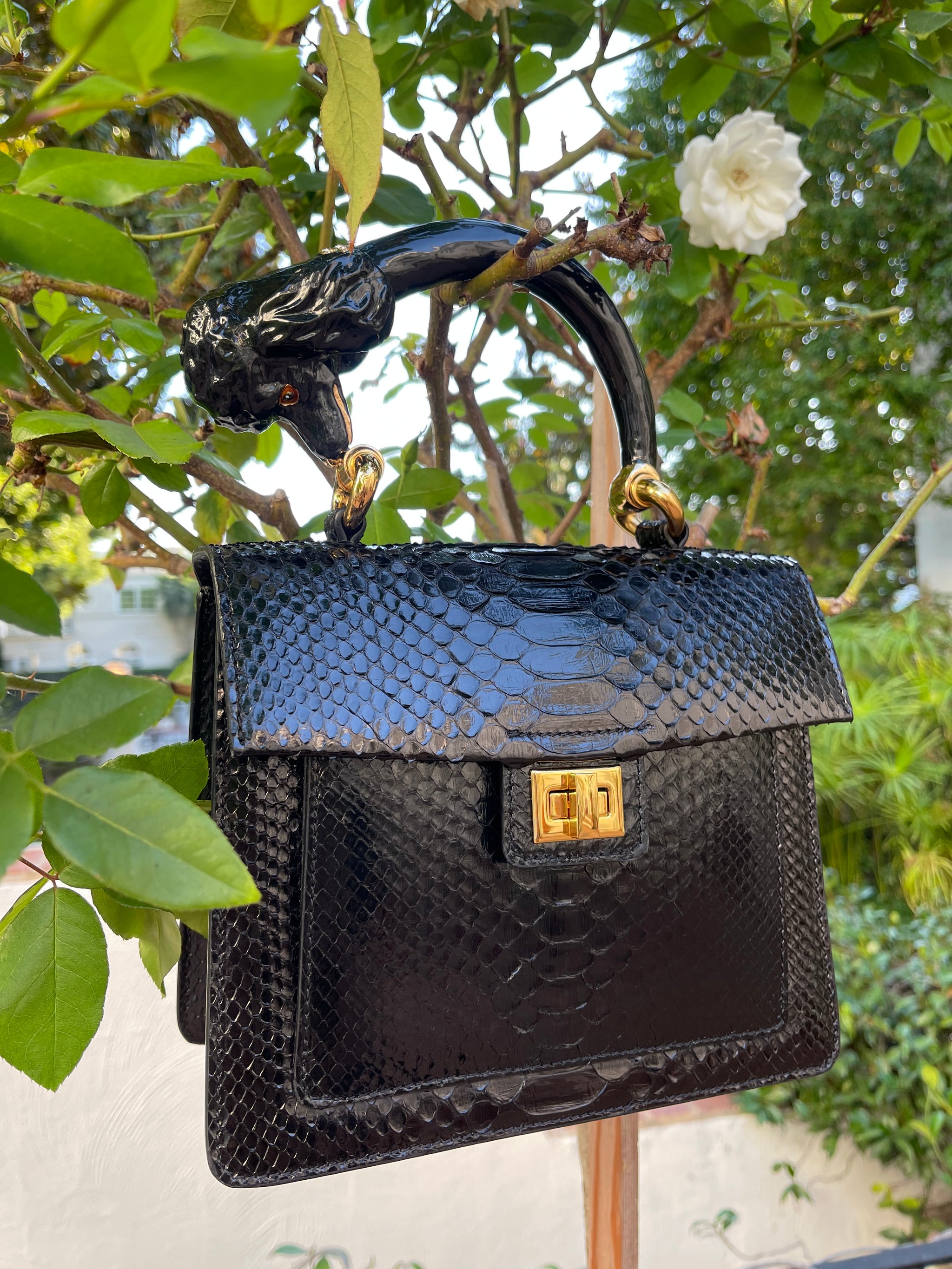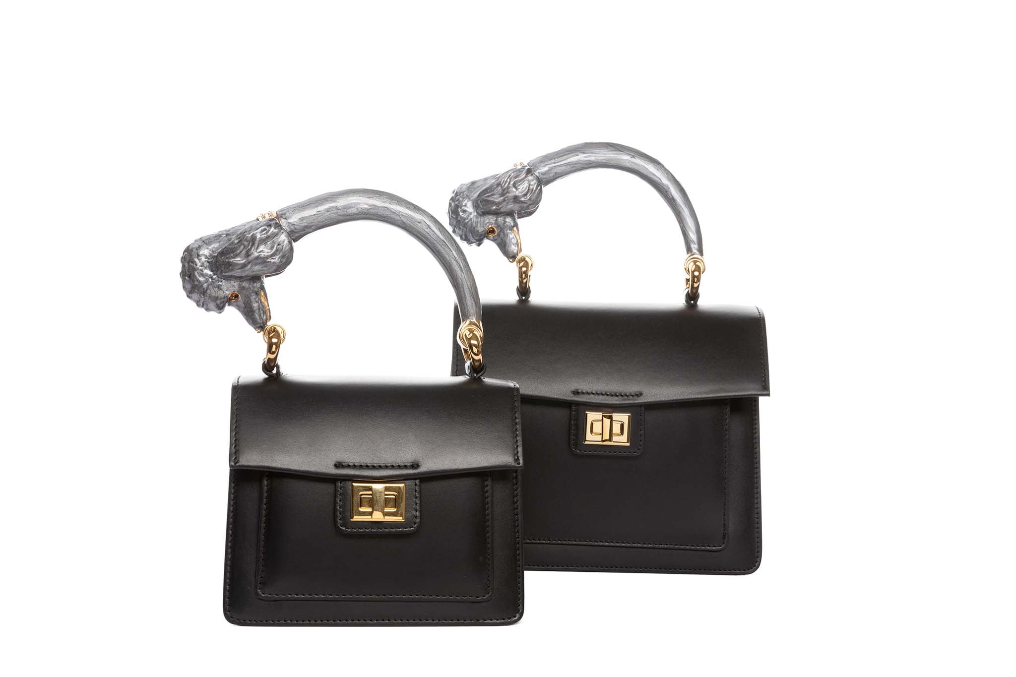 Elegant, unique, conversation piece. This Allysa Payne x Sebastian Poodle Handle Handbag, is hand crafted in Italy, using the highest quality leather & materials.