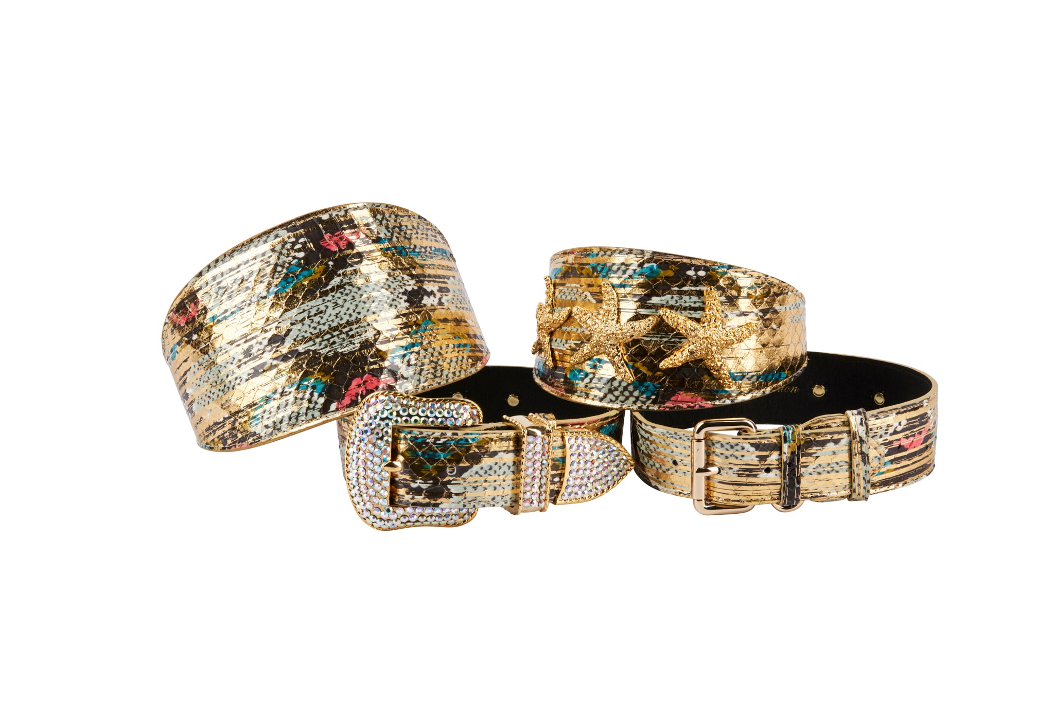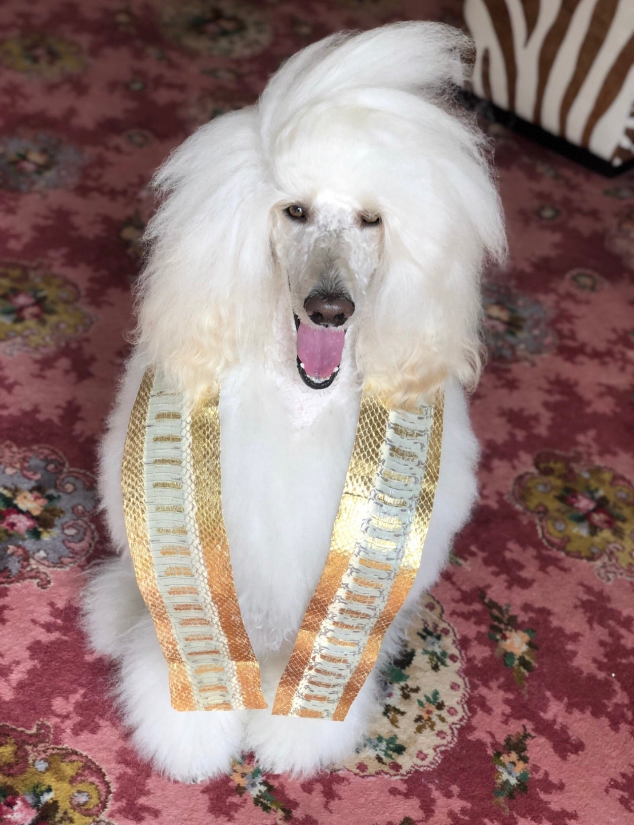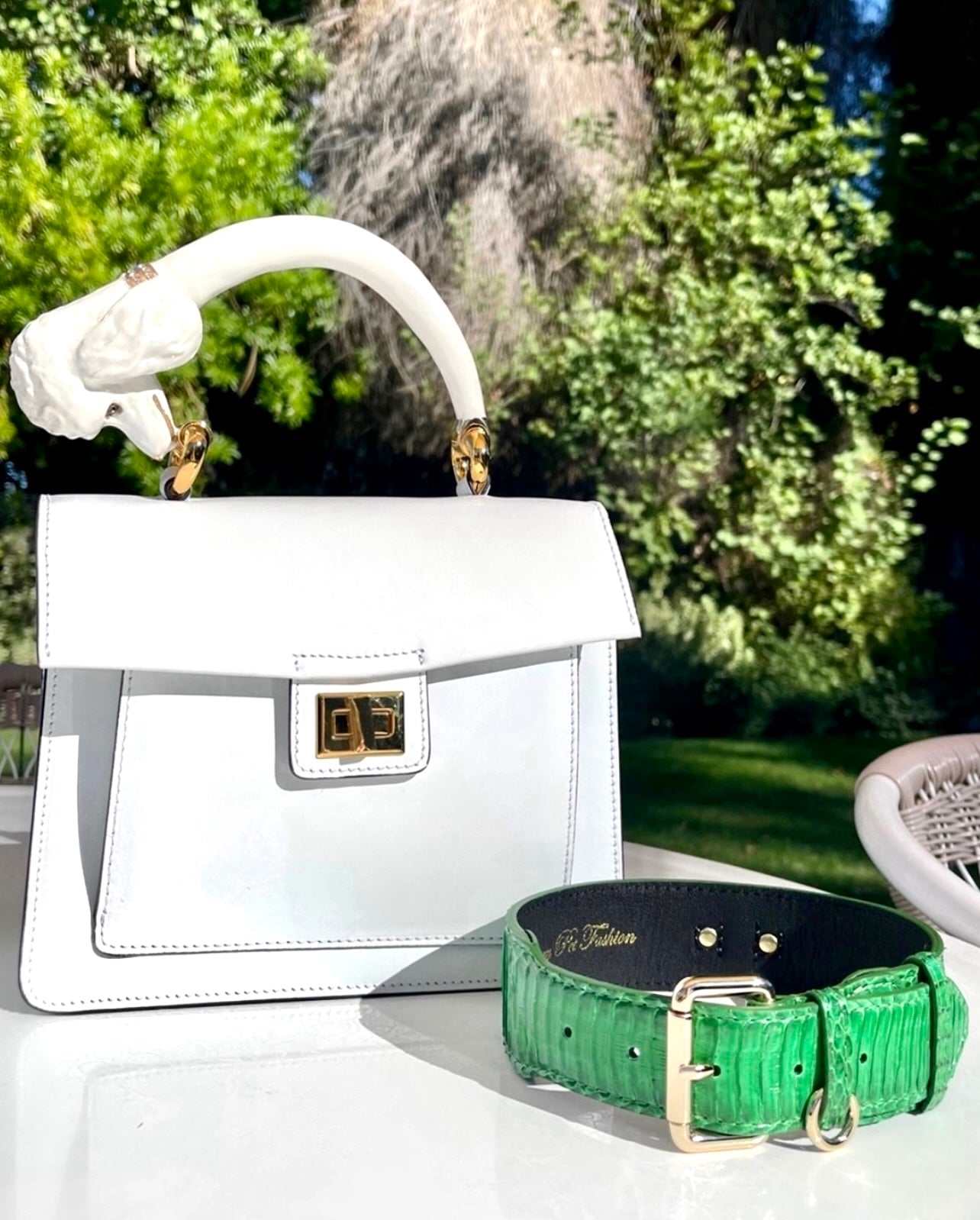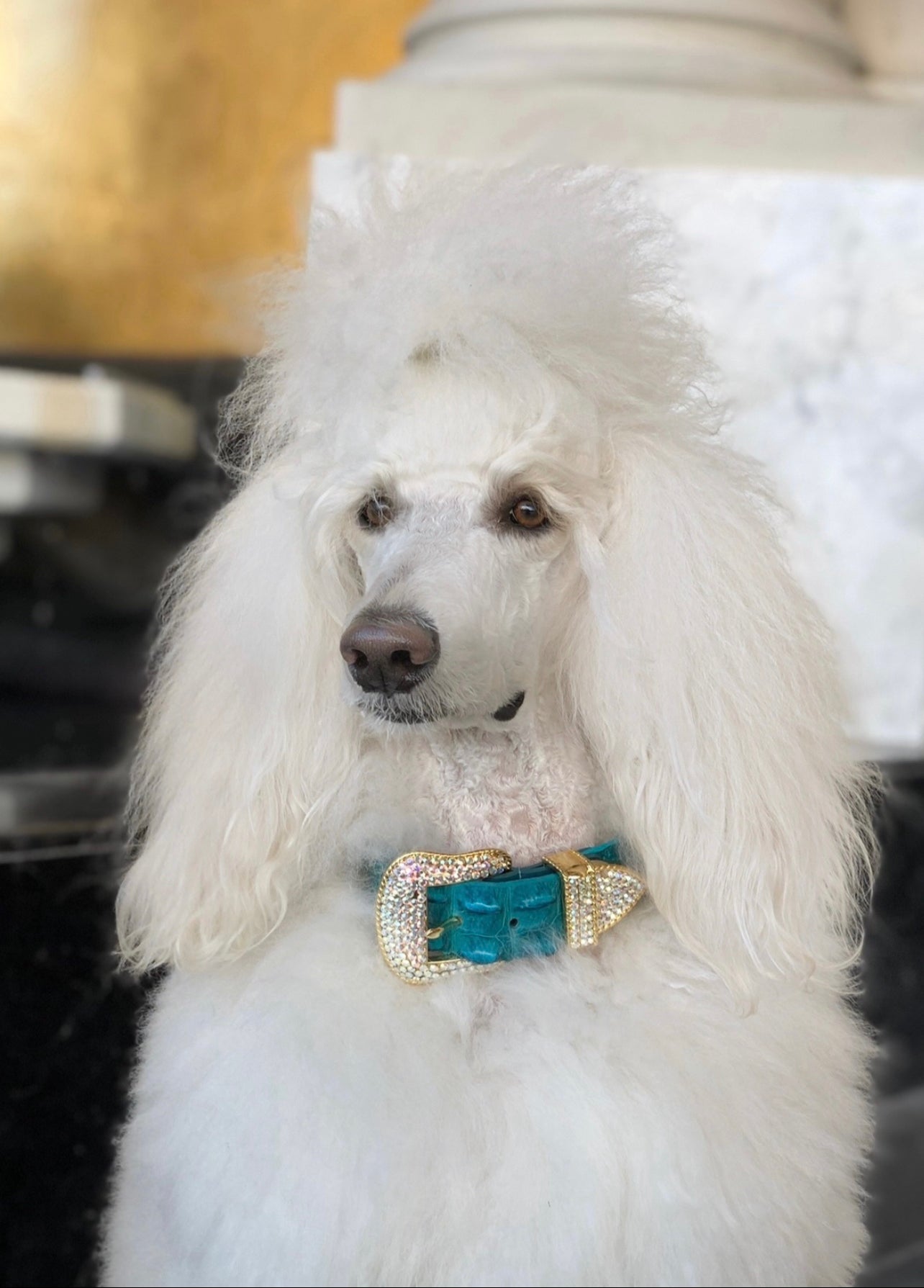 This Line of Elegant, Exotic, Unique, Luxury Pet Accessories, is completely custom, inspired by the Designer's very special, Standard Poodle, Sebastian. Custom Dog Collars, Leashes, and Accessories, made with the same leather and material as many of the AP Shoes and Handbags. Now your pet can be just as stylish as you!