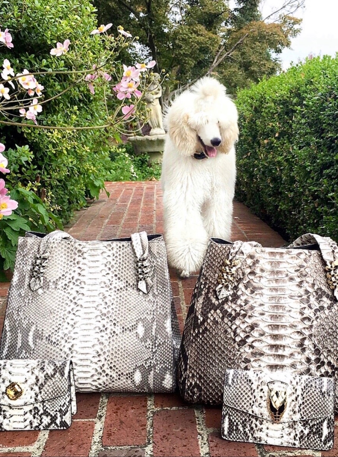 AP Handbags started after many Clients were requesting custom handbags to match their AP Shoes. After doing extensive research, and working in many different Italian factories, AP is producing alongside some of the most famous Brands in the World. This Collection was inspired by the designers love for the outdoors, nature, and growing up surrounded by flowers, butterflies & her New Collection of Custom, Handmade Poodle Handle Handbags, inspired by her dream Standard Poodle, Sebastian!