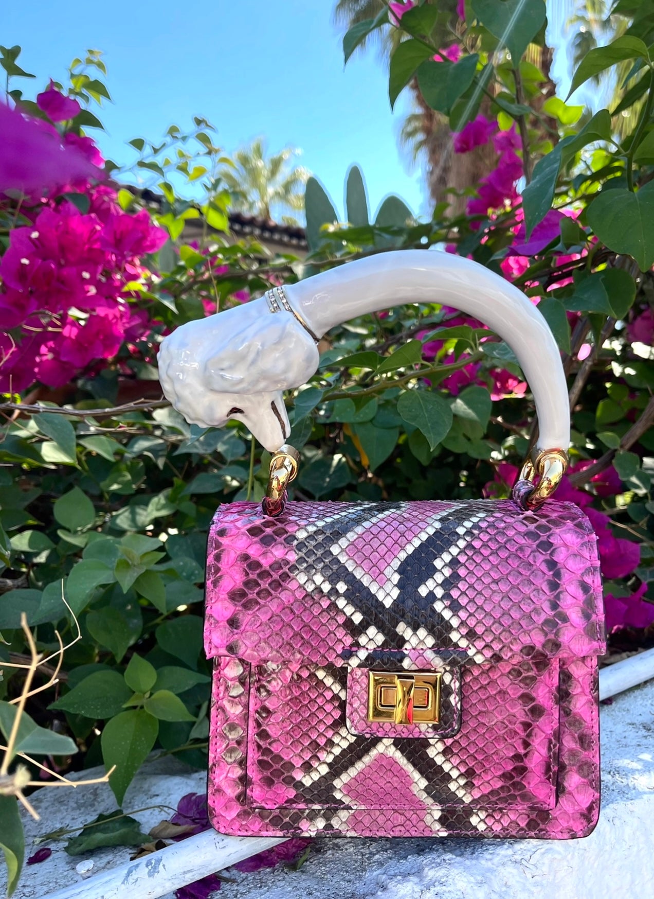 AP Handbags are 100% Handmade In Italy. Crafted together using the finest Italian leather and materials the world has to offer. All the leather and snakeskin is hand selected in Italy, and then crafted together, in the most exclusive factories, in Italy. Many handbags are one of a kind, and every piece is inspired by something special.