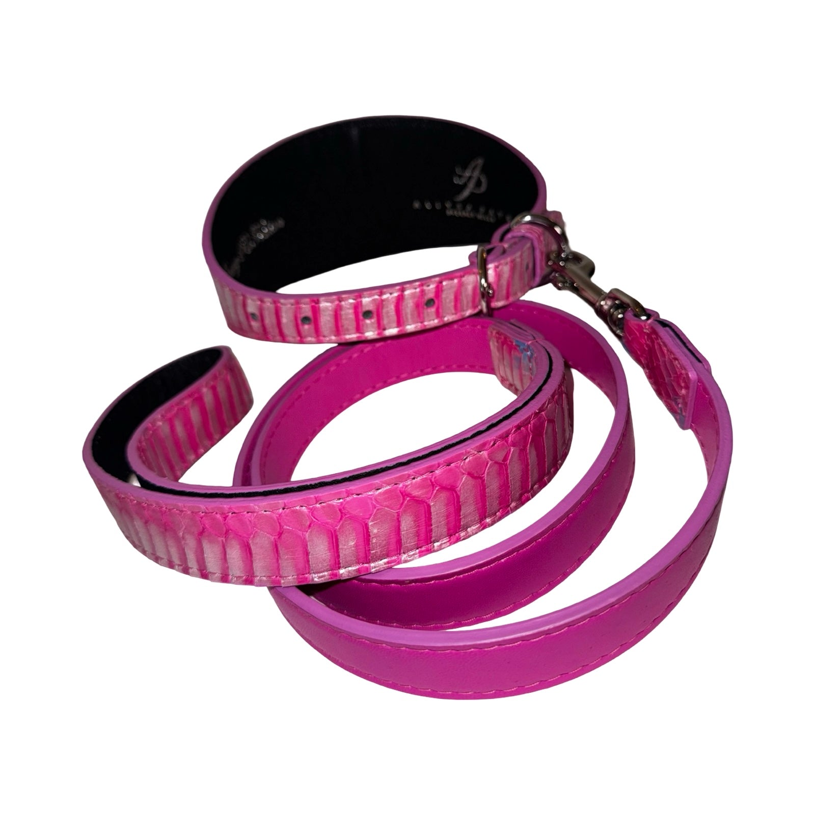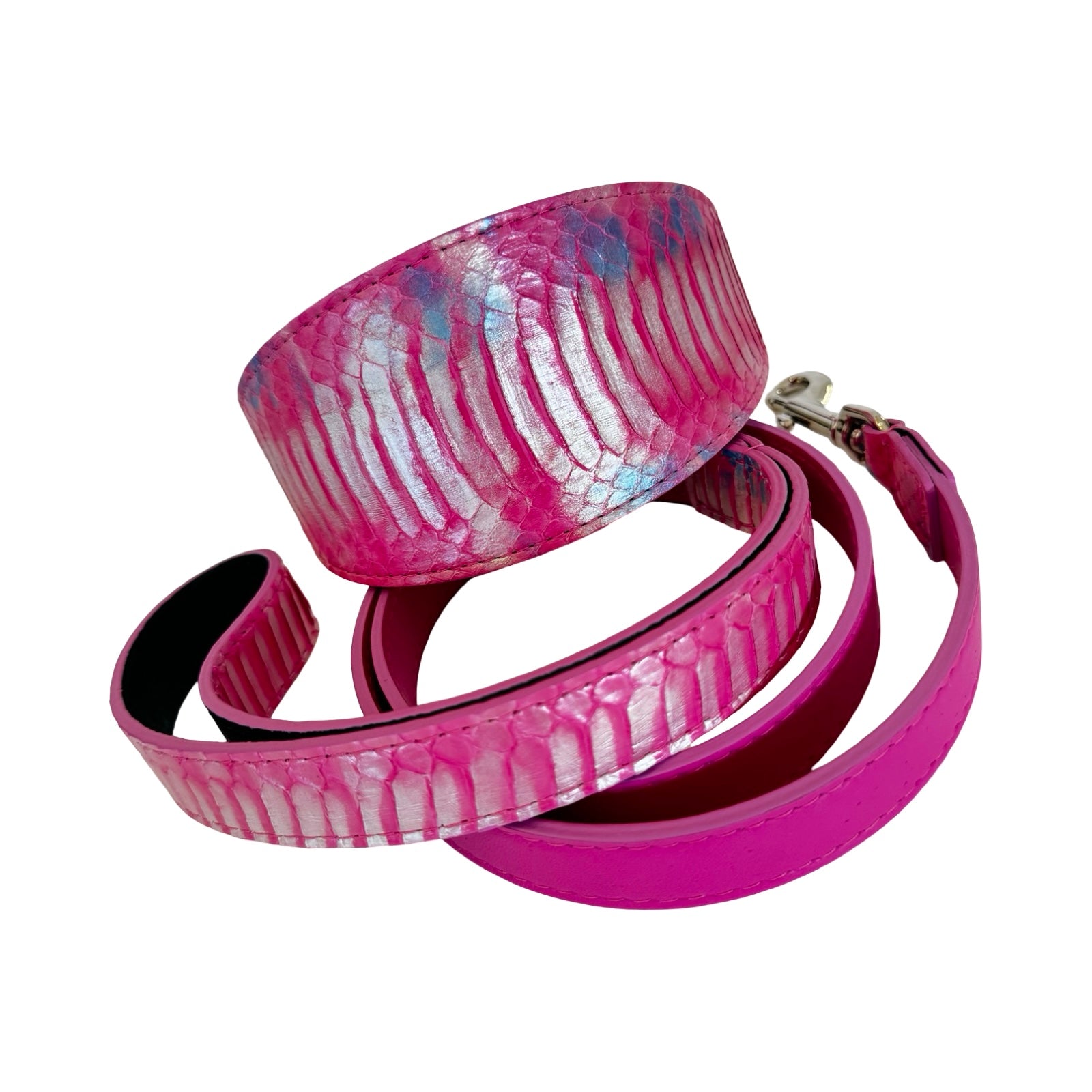 The coordinating Leash is handcrafted using a luxurious combination of Authentic Snake and ultra-soft Italian leather in vibrant fuchsia pink, paired with finely crafted Italian hardware. The pairing of textures enhances the overall visual impact while maintaining the exceptional quality and attention to detail that define the collection.